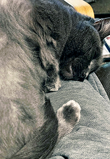 To make sure all of our pets make this letter, Cinderella is shown taking a cat nap on my lap.
